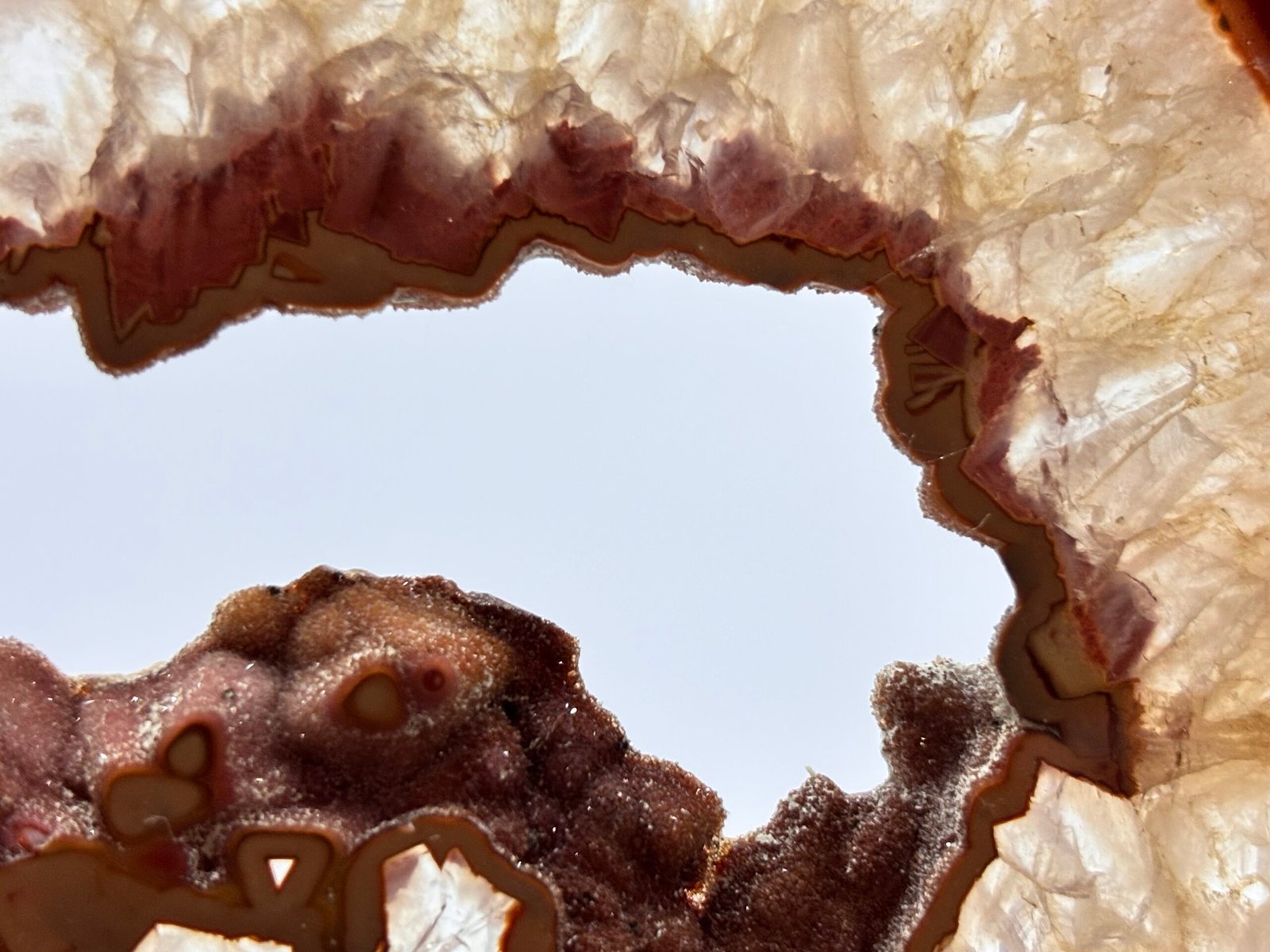 Encante-se com este exclusivo geodo de ágata, uma verdadeira obra-prima da natureza. Suas camadas vibrantes em tons castanhos e avermelhados combinam perfeitamente com cristais translúcidos e um lindo centro oco, proporcionando um toque sofisticado para qualquer espaço. Ideal para colecionadores exigentes ou para realçar a decoração de salas de estar, escritórios e ambientes zen. Cada peça é única, com aproximadamente 12 cm de largura, e destaca-se pelo brilho natural e pelos detalhes impressionantes de suas cores. Seja para presentear alguém especial ou para elevar sua coleção de minerais, este geodo de ágata garante beleza e energia positiva ao seu ambiente.